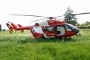 Intervention de l'hélicoptère de la Rega à Cossonay pour un accident de tronçonneuse.