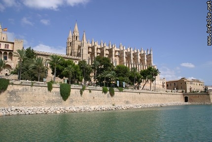 Cathédrale de Palma, devant une grande fontaine (qui n'est pas la mer!).