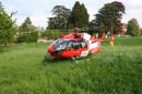 Intervention de l'hélicoptère de la Rega à Cossonay pour un accident de tronçonneuse.